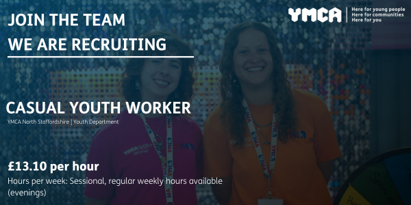 YMCA North Staffordshire is a safe recruitment Organisation and an Equal Opportunities Employer.